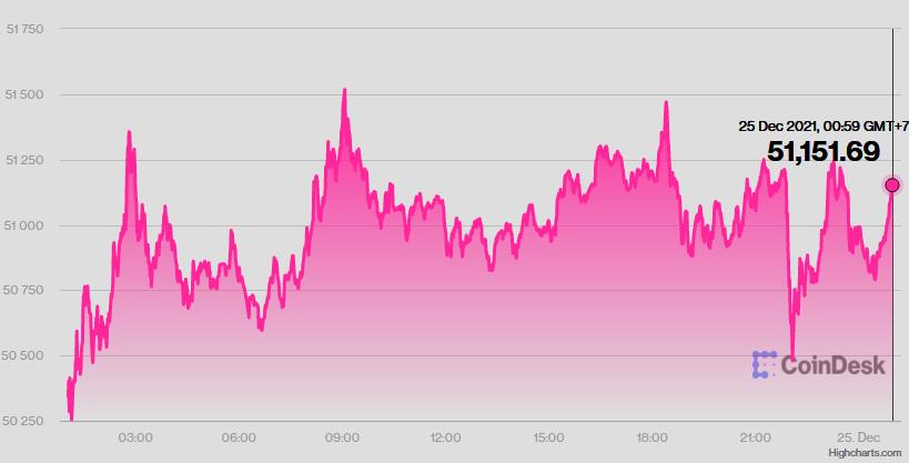Trên thị trường tiền kỹ thuật số, Bitcoin sau khi tăng vọt lên trên 50.000 USD trong ngày 23/12 đã duy trì quanh mức đó suốt ngày 24/12, phần lớn thời gian trong ngày trên ngưỡng 51.000 USD, có lúc đạt 51.524 USD.